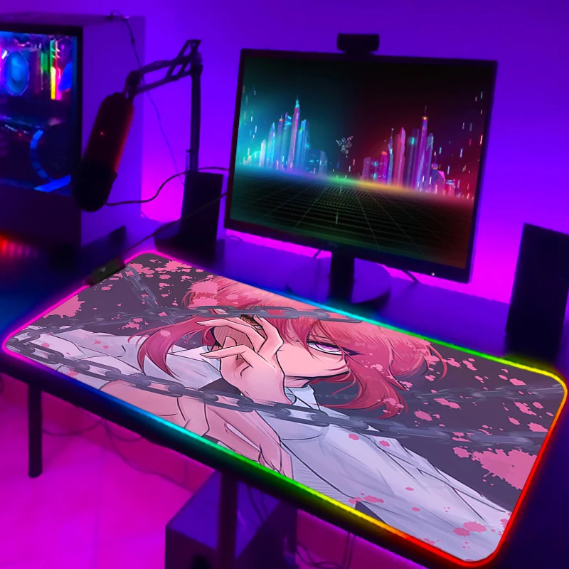 Chainsaw Man Makima Pink Gray RGB Mouse Pad