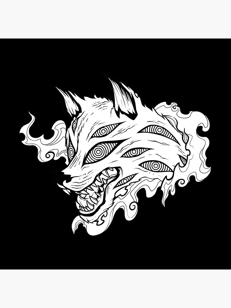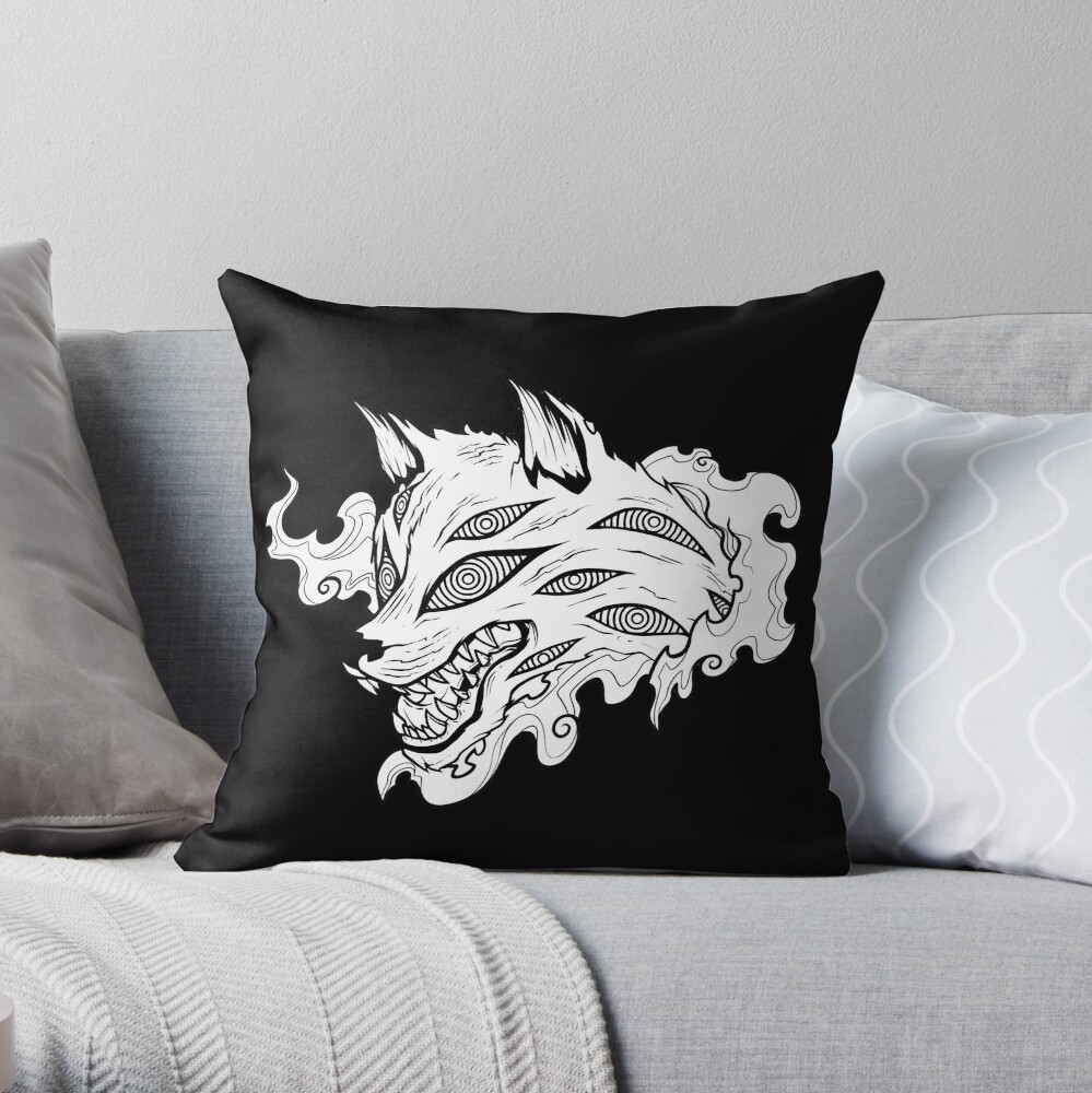 Kon Fox Demon Chainsaw Red Line Art Throw Pillow