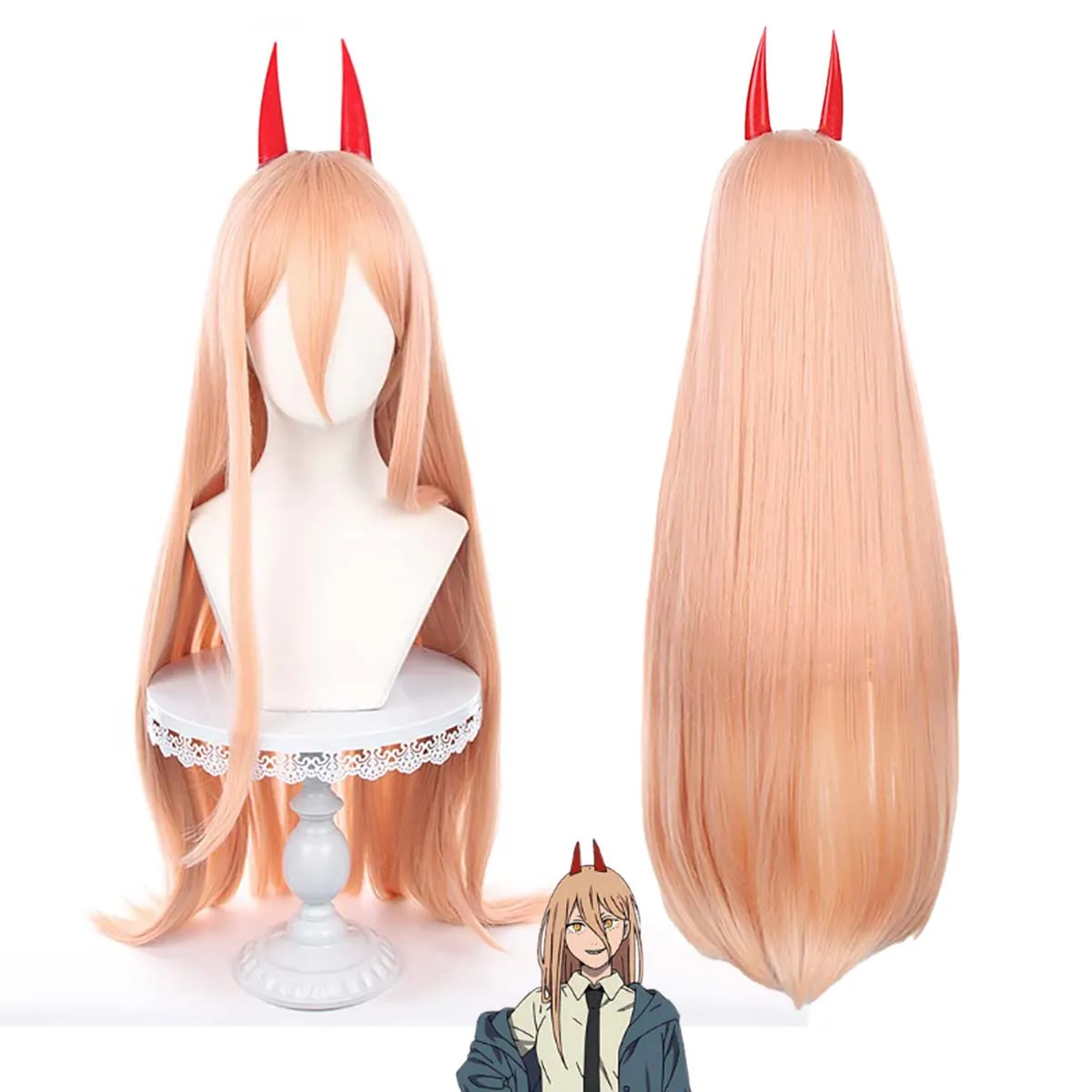 Anime Chainsaw Man Red Devil Power Cosplay Long Orange Straight Wig